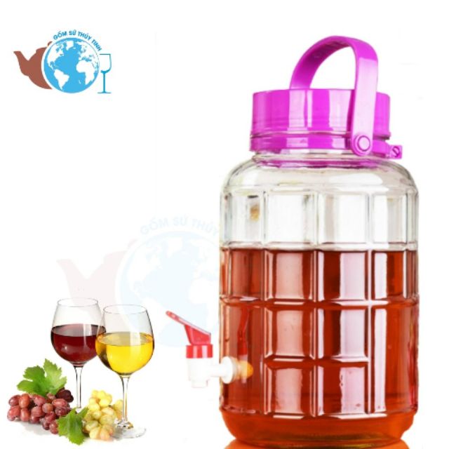 BÌNH NGÂM RƯỢU THỦY TINH 5 LÍT, 8 LÍT QUAI XÁCH . LOẠI CÓ VÒI VÀ KHÔNG VÒI